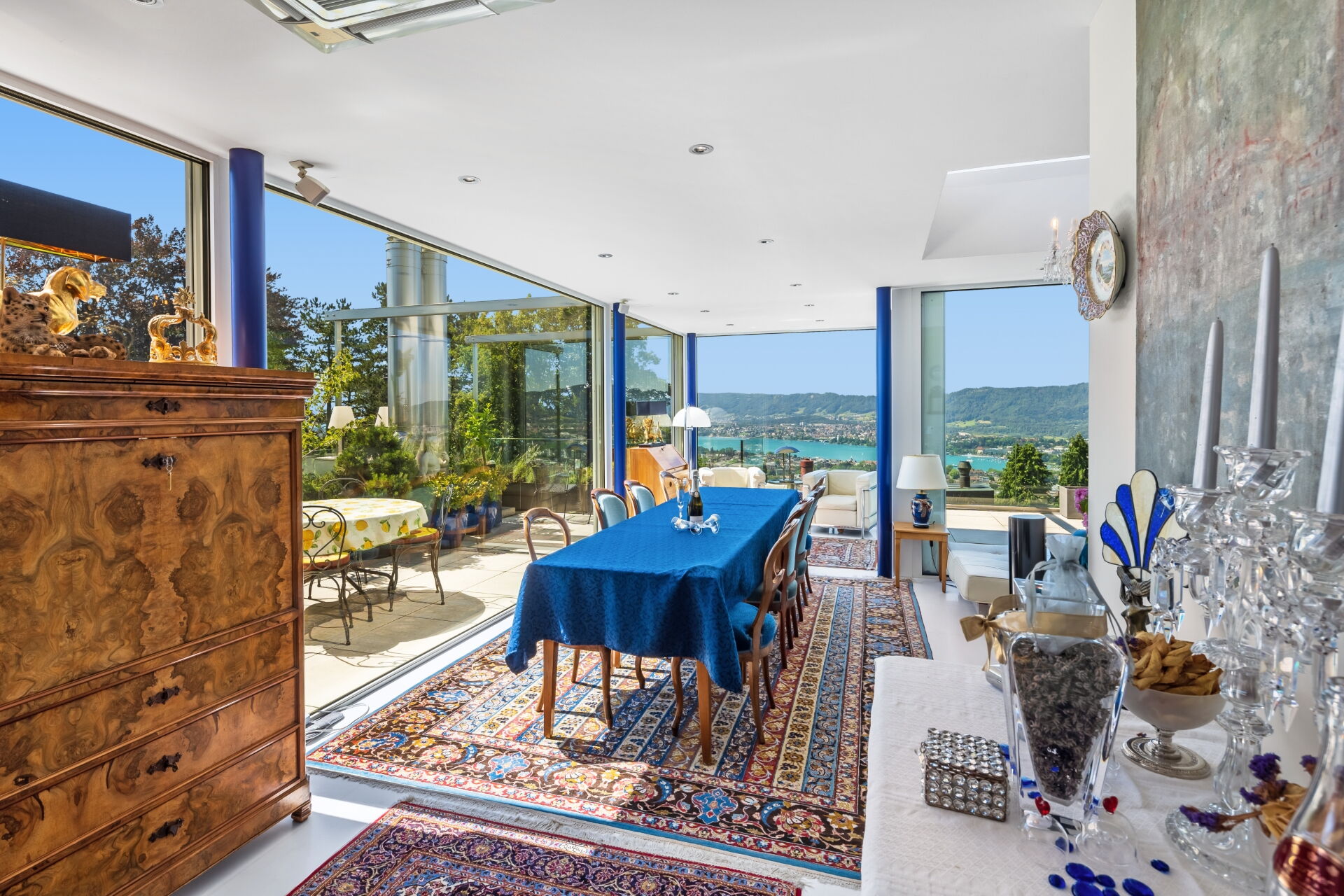 Der 1989/90 am privilegierten Zürichberg erbaute ‚Cube Bellevue‘ bestand ursprünglich aus zwei separaten Wohnungen. Zwischen 2012-2017 wurde die Liegenschaft zu einer einzigen, grossartigen Einheit auf vier Etagen zusammengefügt. Heute präsentiert sich die Stadtvilla mit 400 m2 Wohn- und Nutzfläche, 10 Zimmern, 3 Küchen, 4 Vollbädern sowie mehreren Gästetoiletten und einem internen Lift. Die Tiefgarage umfasst 4 Parkplätze. Das Attikageschoss besticht mit 3 grossen Terrassen mit grandiosem Vollpanorama.